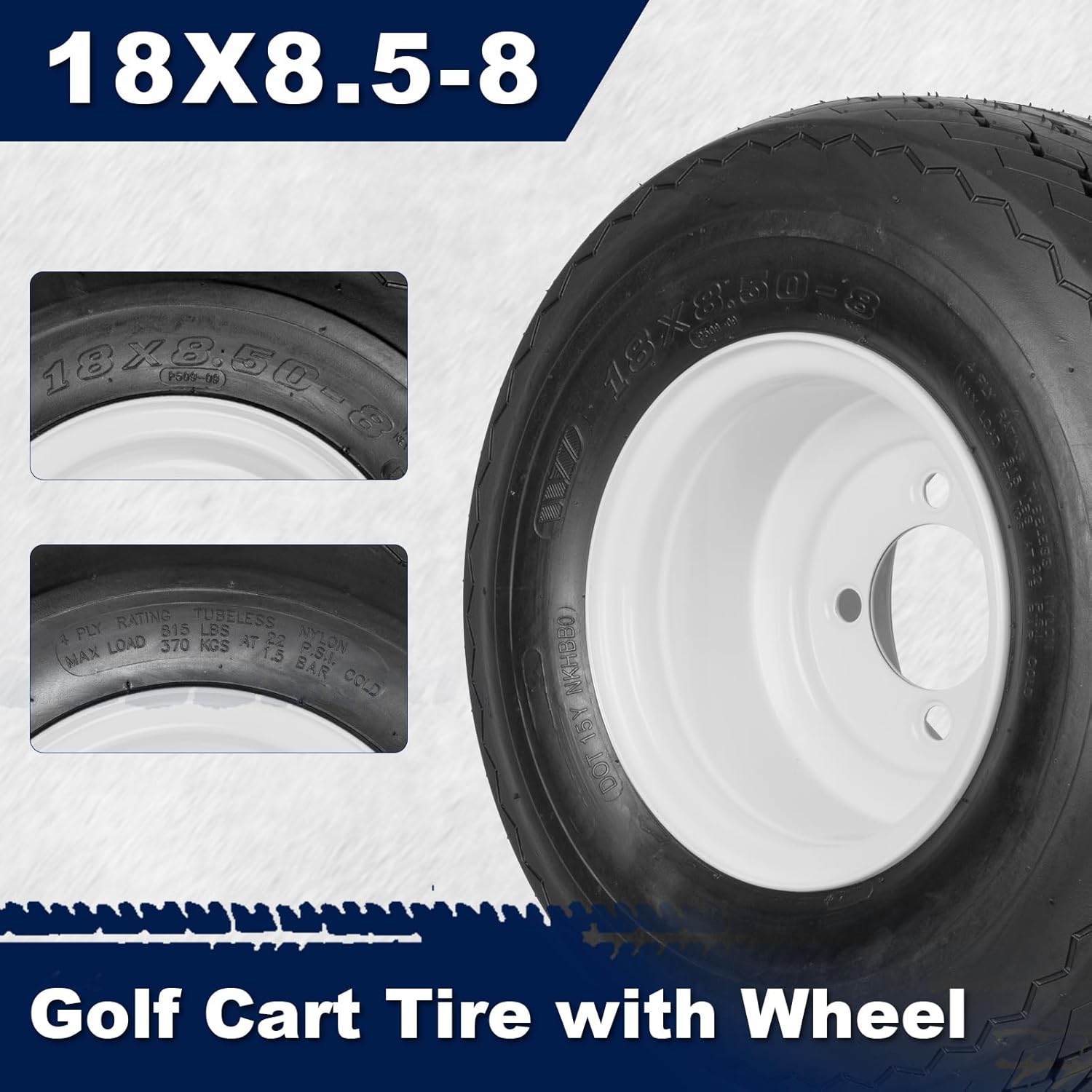 WEIZE 4 Pack 18X8.50-8 18/8.5-8 Golf Cart Tires with Wheel Assembly, 4 Lug 4" Center, Fit Club Car, Cushman, EZ-GO