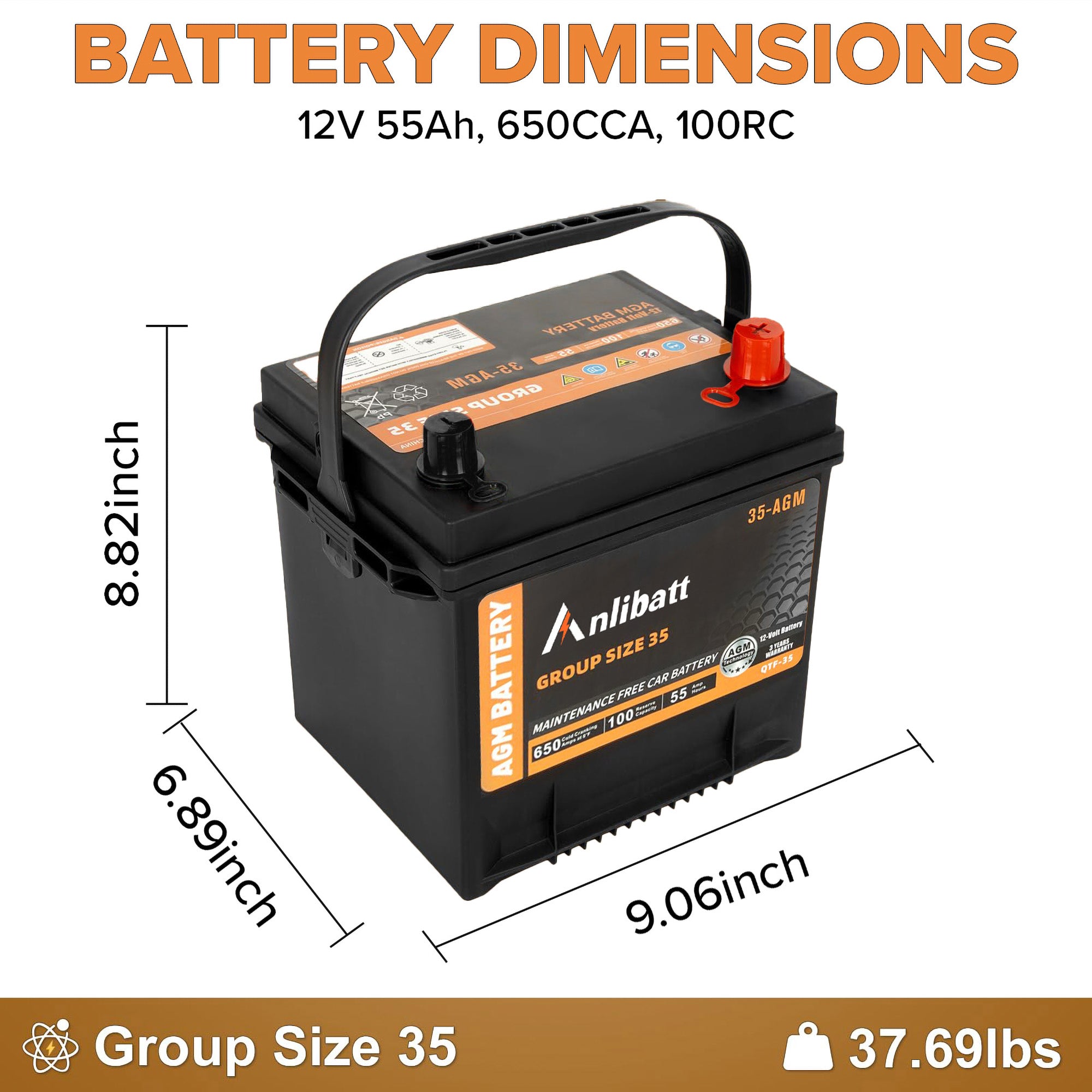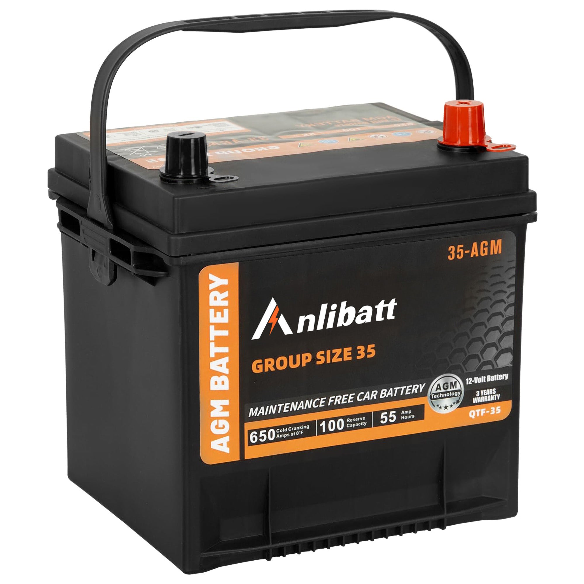 Anlibatt Car Start Stop Battery Group Size 35 650CCA AGM Maintenance Free 12V 55Ah 100RC Rechargeable High Performance Battery