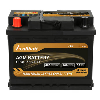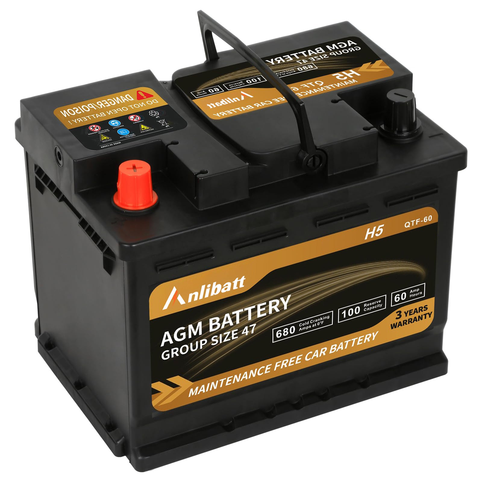 Anlibatt Platinum AGM Group 47 Battery, 12 Volt Rechargeable Automotive Batteries for Car, H5 680CCA 60Ah 100RC