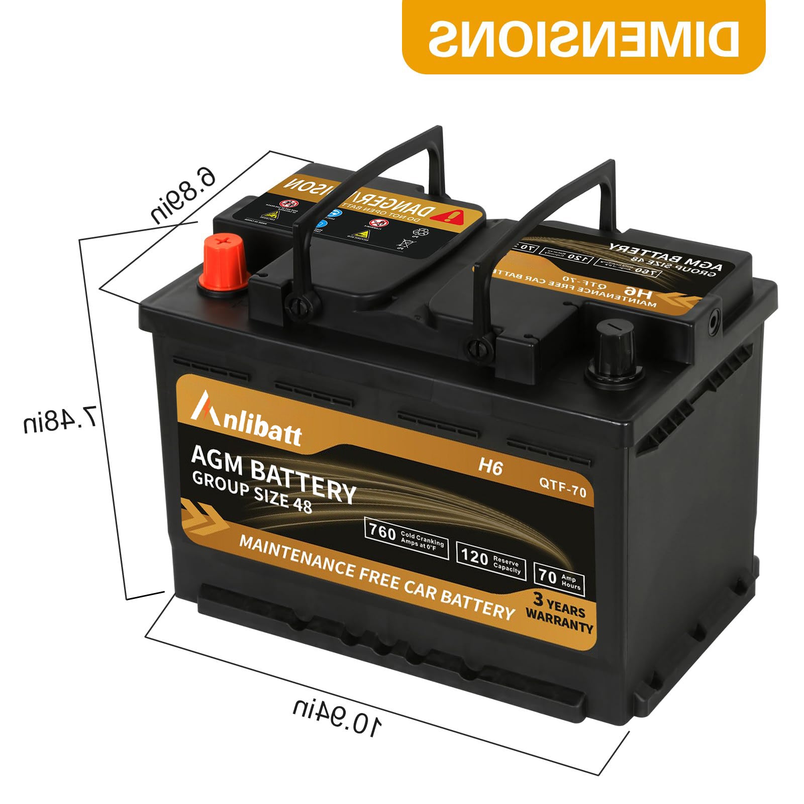 Anlibatt Platinum AGM Group 48 Battery, 12 Volt Rechargeable Automotive Batteries for Car, H6 760CCA 70Ah 120RC