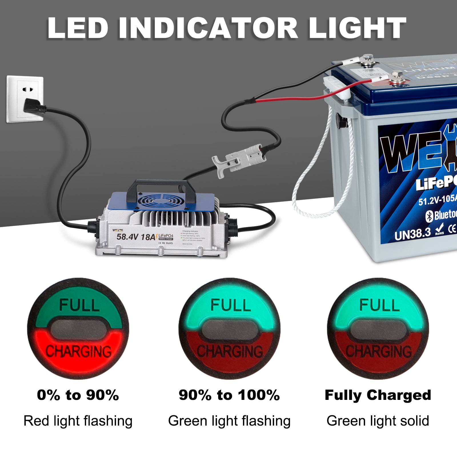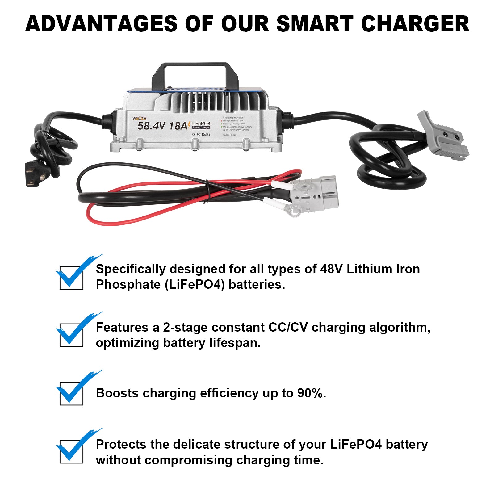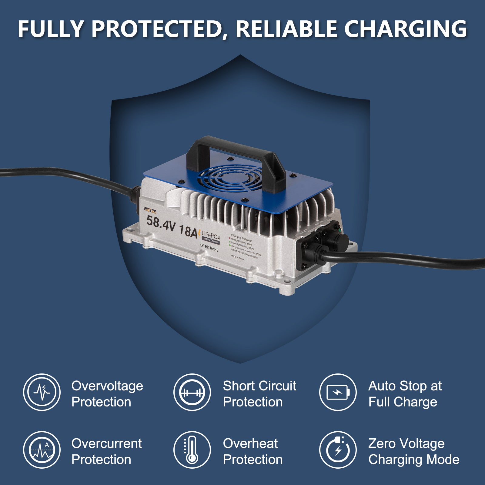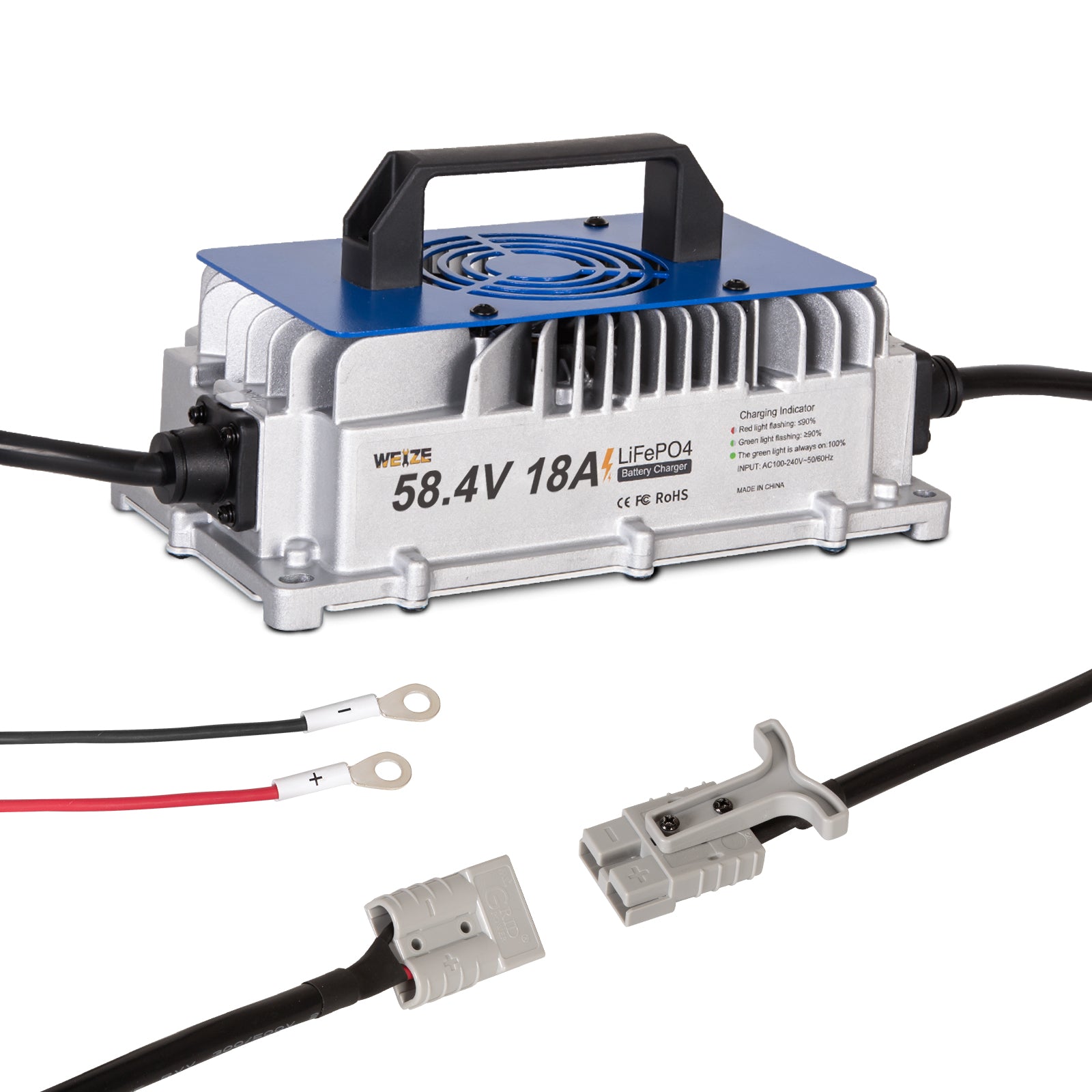 Weize 48V (58.4V) 18A LiFePO4 Lithium Battery Charger, Waterproof Smart AC-DC Charger for 48V Golf Cart Batteries