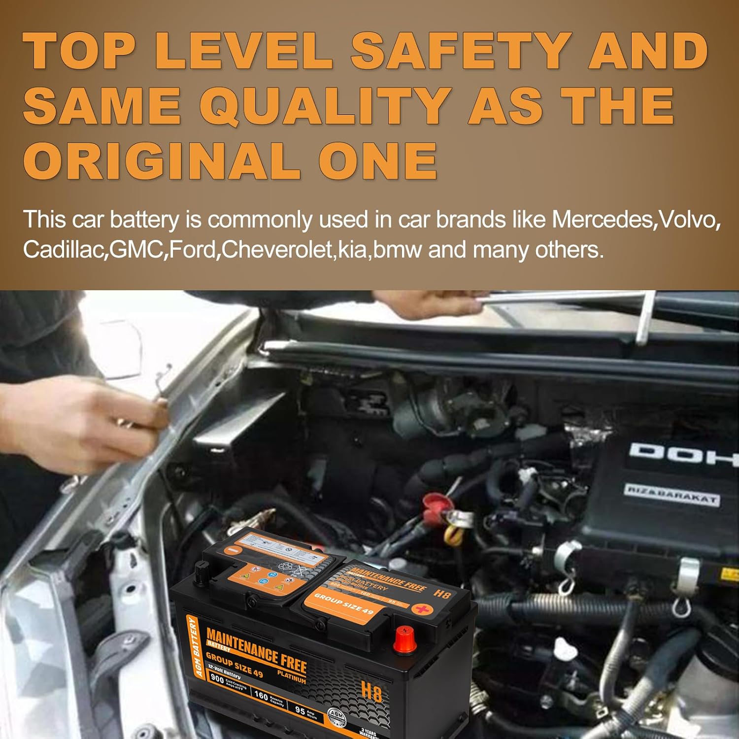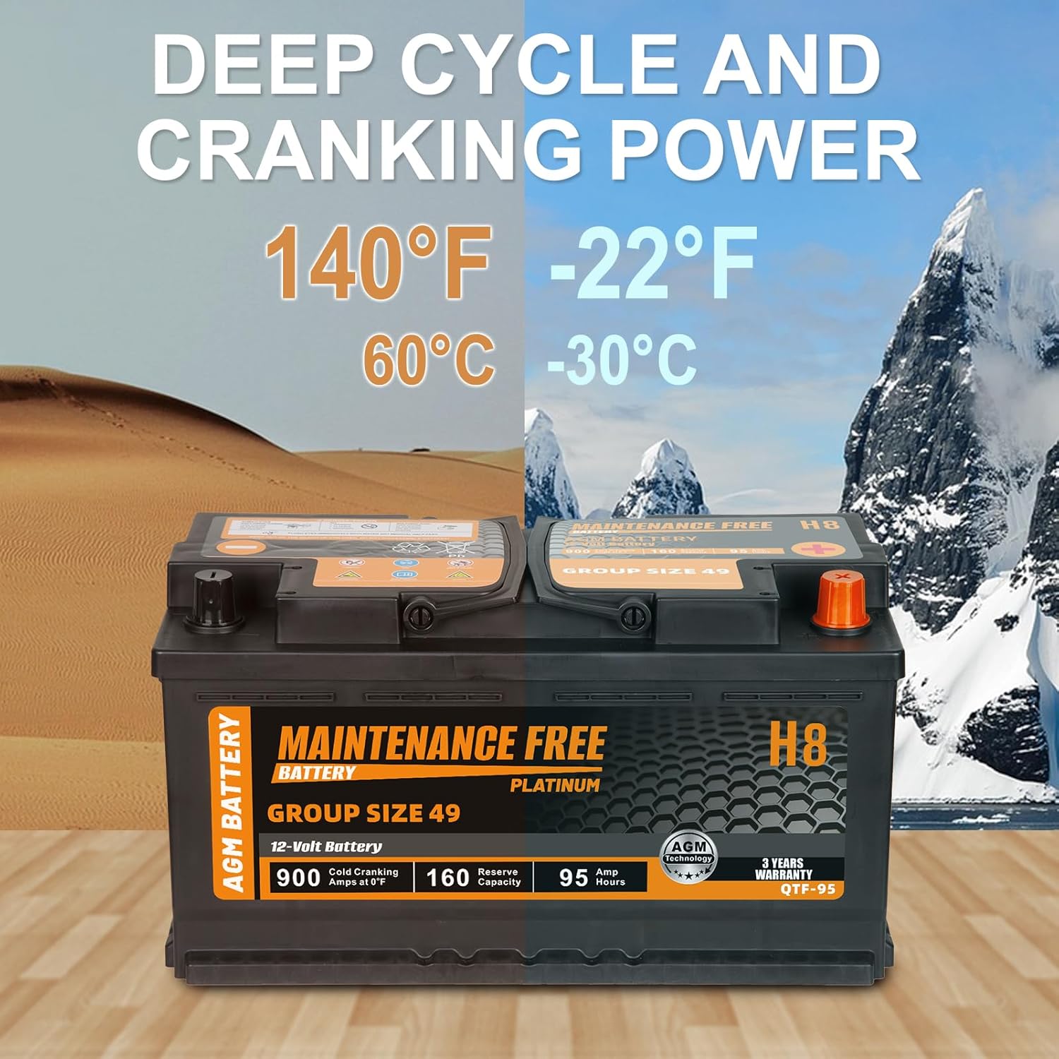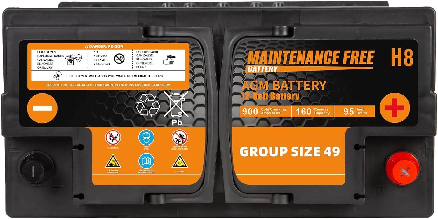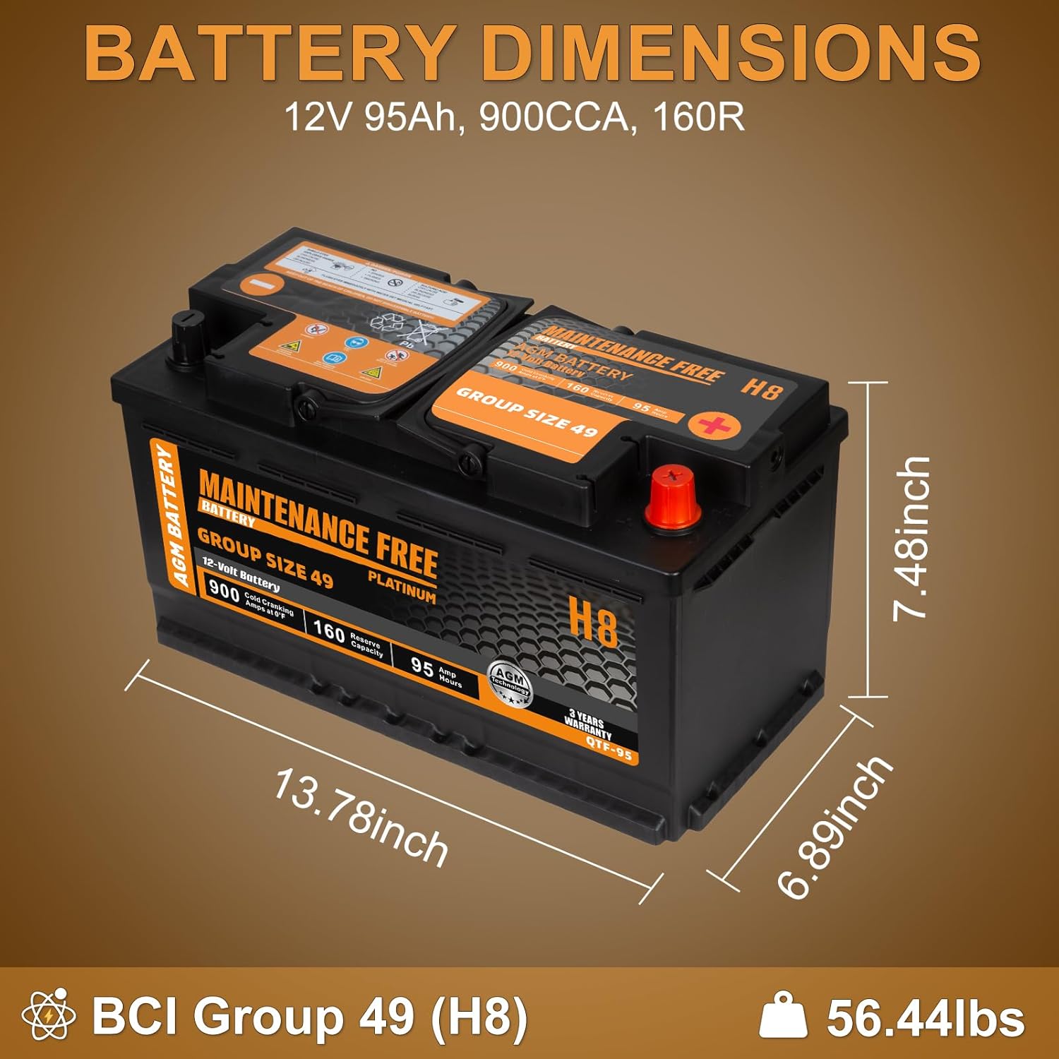 Autocessking Group Size 49 AGM Car Battery, H8 Start and Stop Automotive Battery Rechargeable, 12V 95Ah, 900CCA, 160RC "