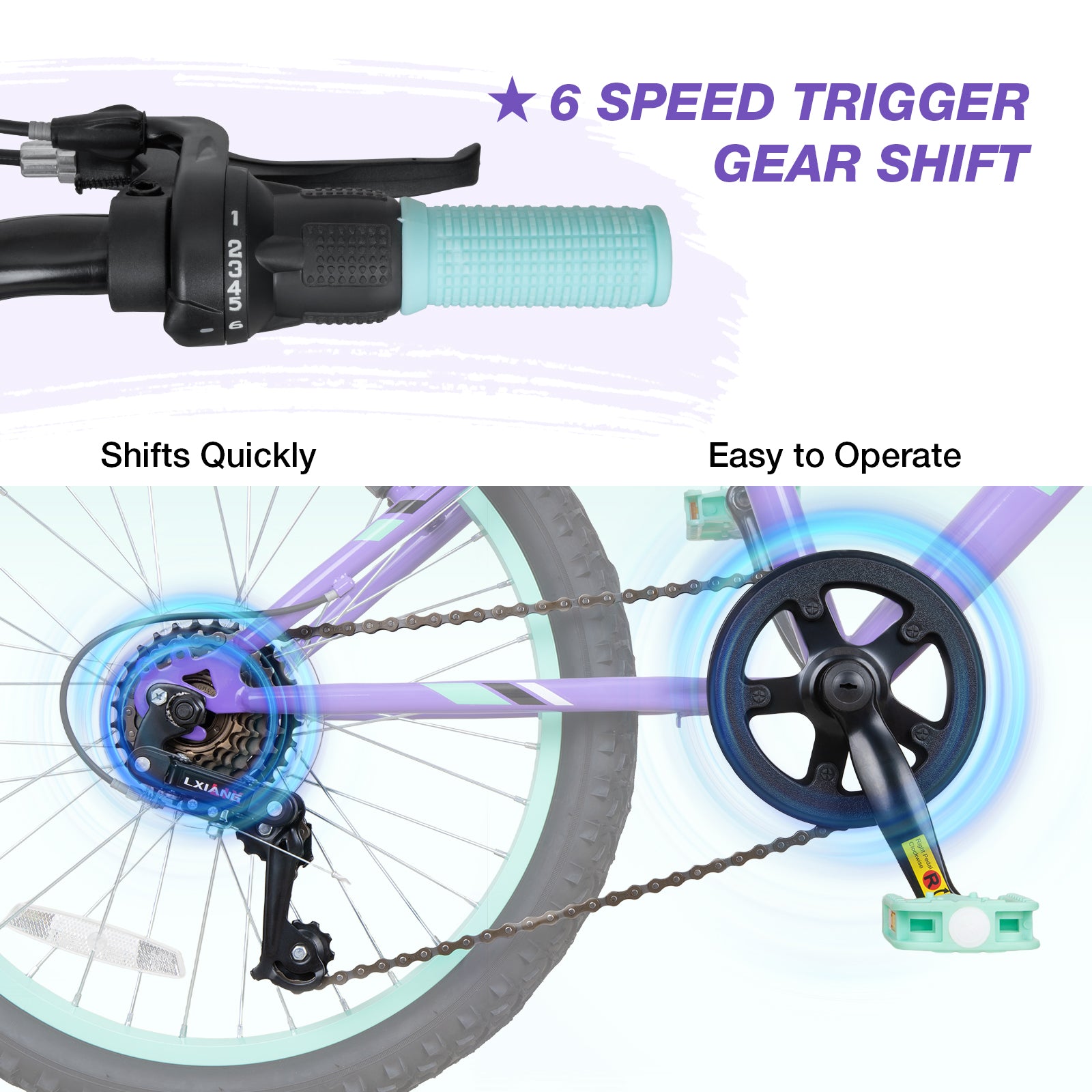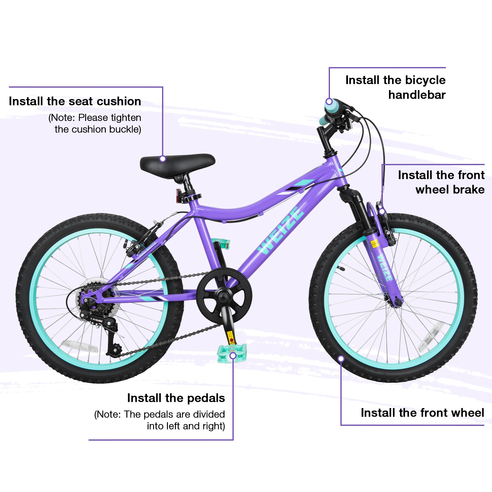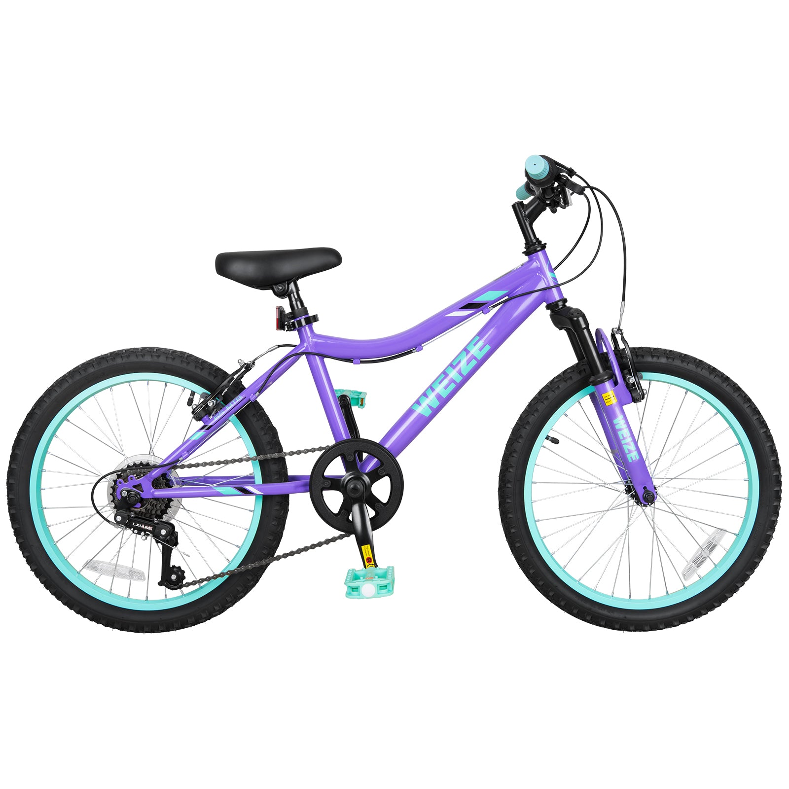 WEIZE 20 Inch Kid Mountain Bike,Kid Bike for Girls Age 6-14 Year Old,6 Speed Kid Bicycle with Front Suspension Fork,Adjustable Seat Height,High-Carbon Steel Frame,Ideal for Girl Adventurers,Purple