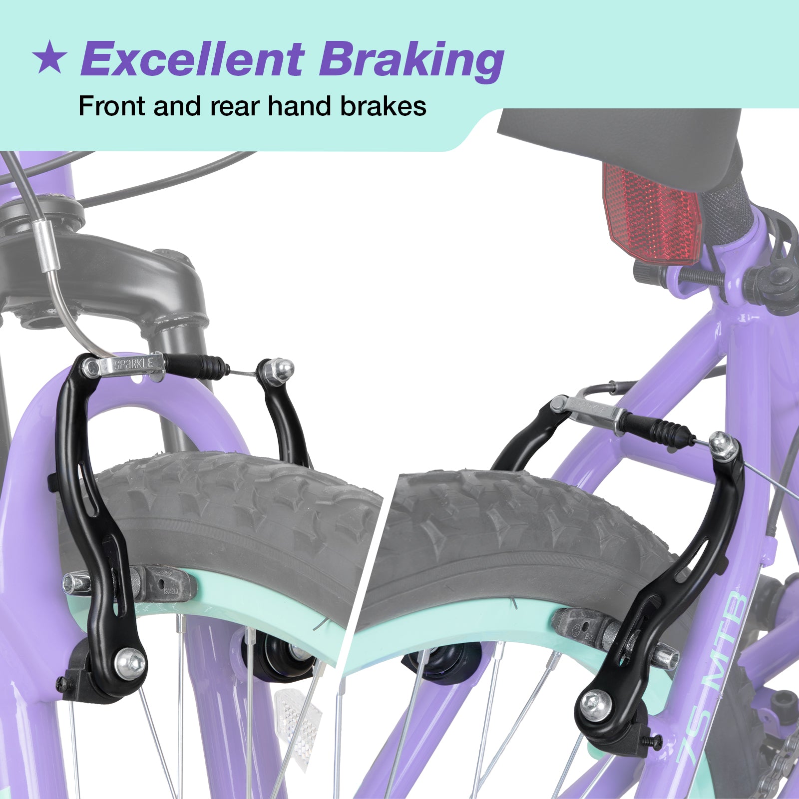 Efficient Braking System Equipped with front and rear caliper brakes, this bike delivers highly responsive and reliable stopping power. Whether on wet surfaces or steep downhill paths, the braking system ensures quick deceleration and control, providing parents peace of mind and safeguarding young riders during their adventures.