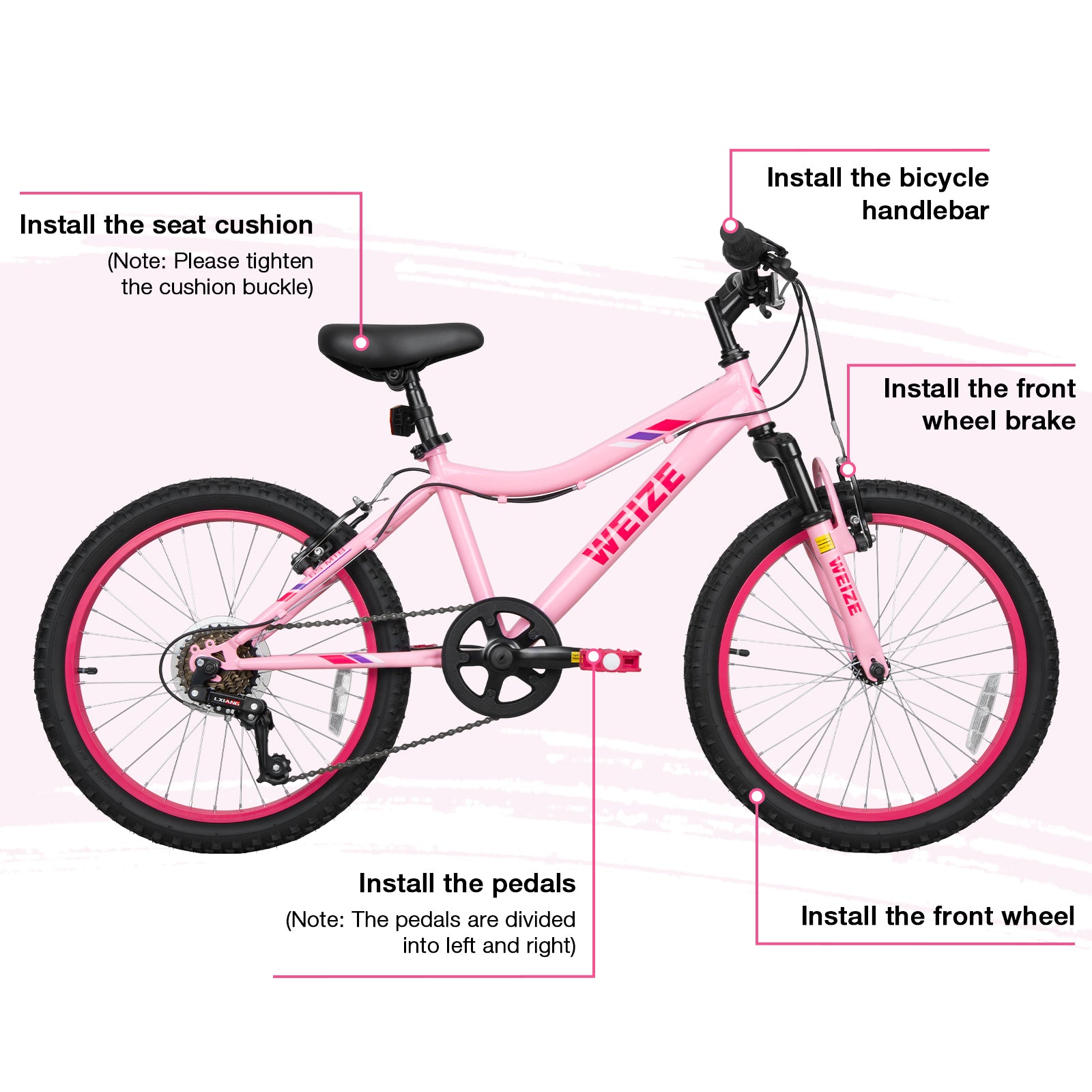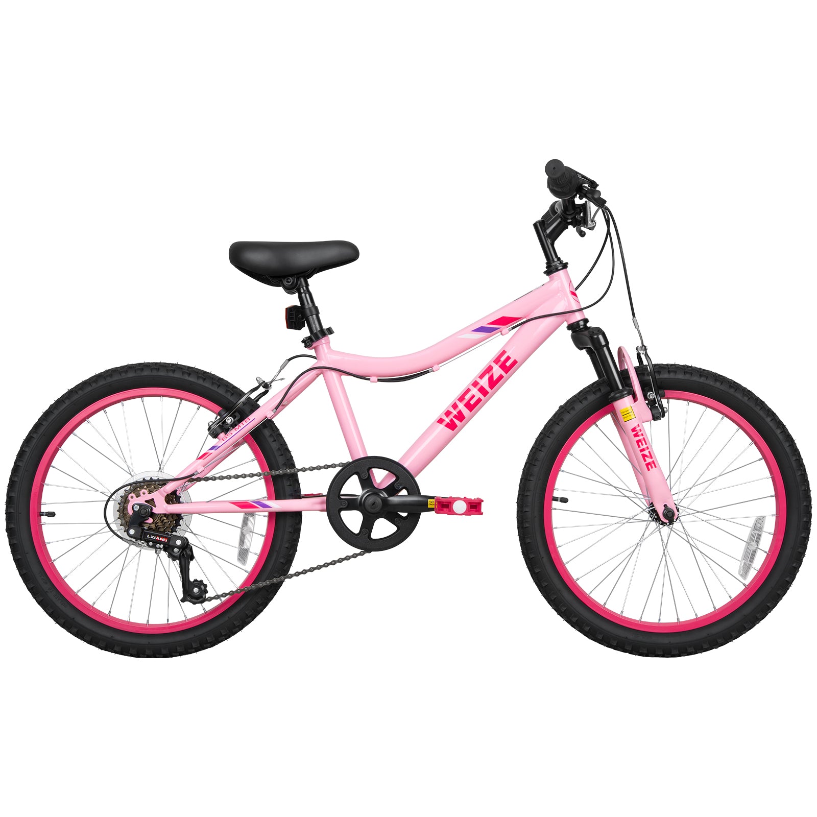 WEIZE 24 Inch Kid Mountain Bike,Kid Bike for Girls Age 6-14 Year Old,7 Speed Kid Bicycle with Front Suspension Fork,Adjustable Seat Height,High-Carbon Steel Frame,Ideal for Girl Adventurers,Pink