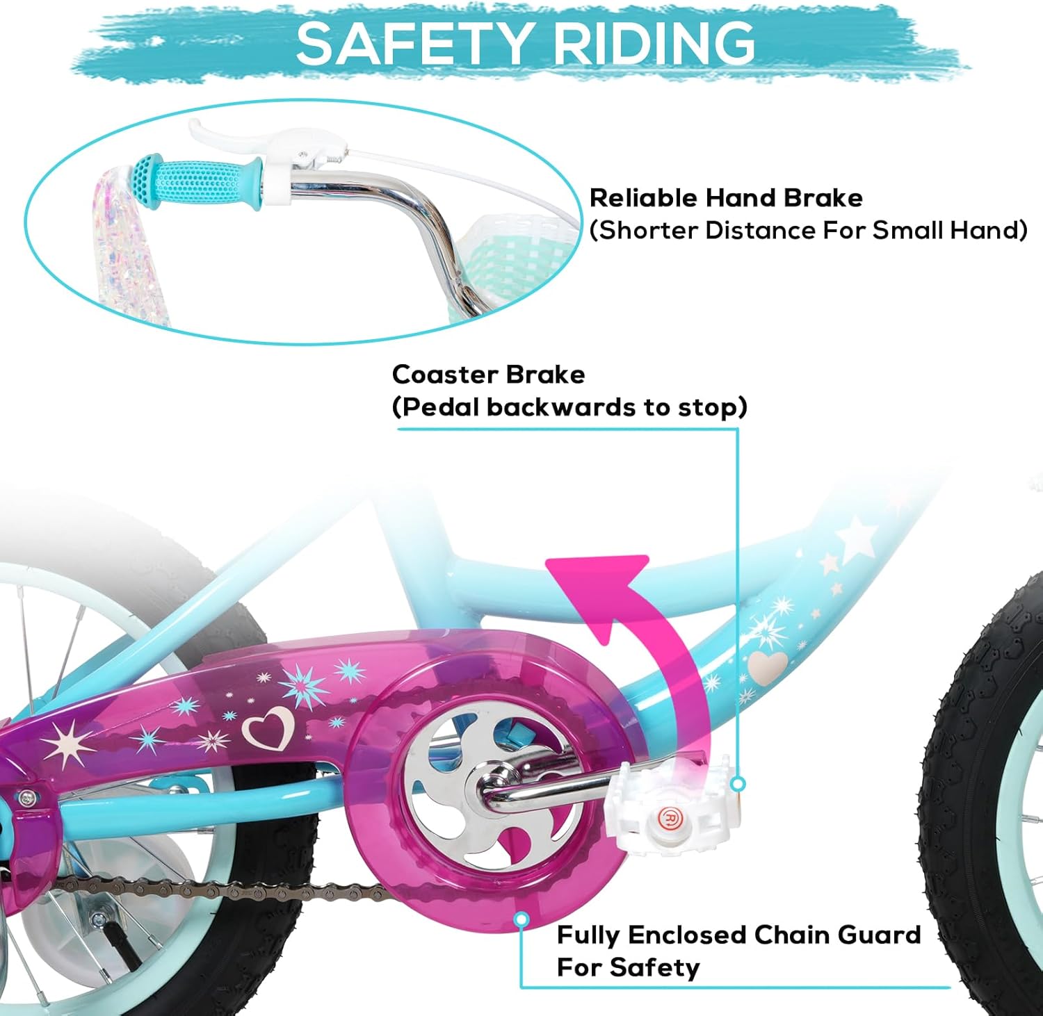 With short distance & reliable handbrake, your kids can confidently maneuver and stop the bike with ease.