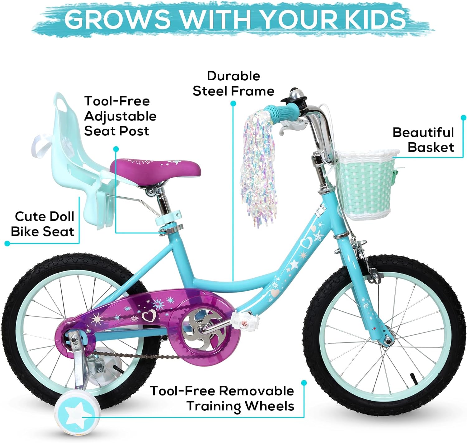 Our kids bike comes with doll seat, let your children enjoy riding with their dolls.