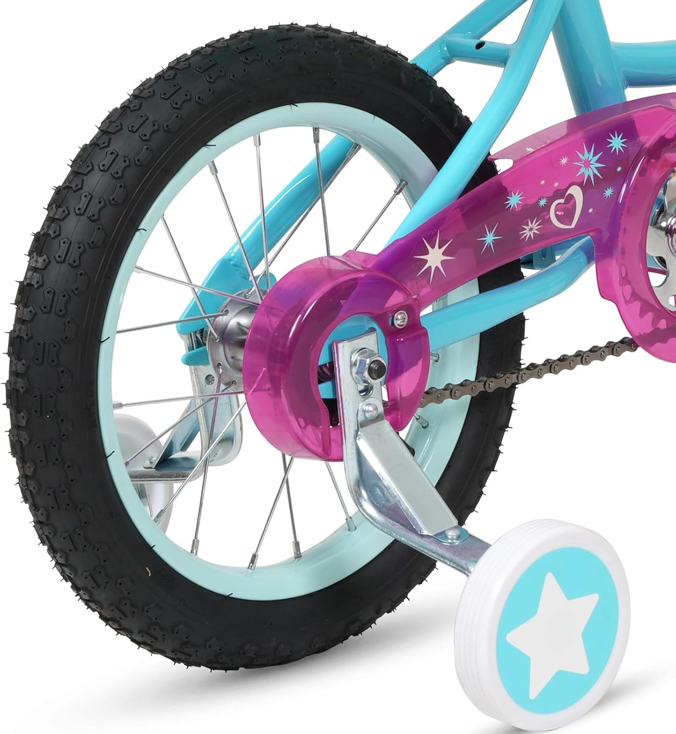 Durable steel frame ensures the stability and safety of the kids bicycle. Training wheels provide beginners with a great opportunity to learn to ride.