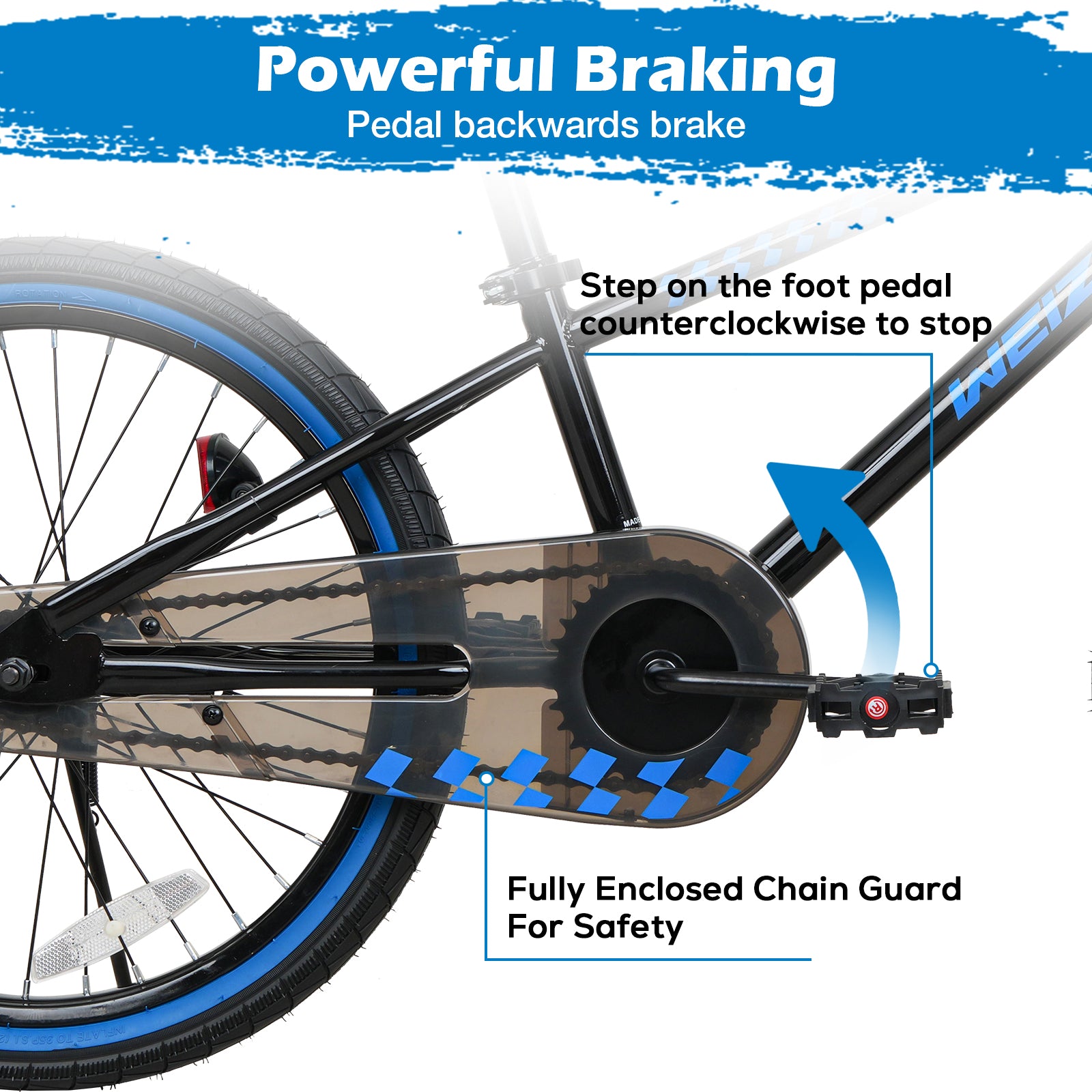 WEIZE Kids Bike, 20 Inch Children Bicycle for Boys & Girls Ages 6-12 Years Old, Rider Height 48-62 Inch, Adjustable Seat & Handlebars, Coaster Brake,Black
