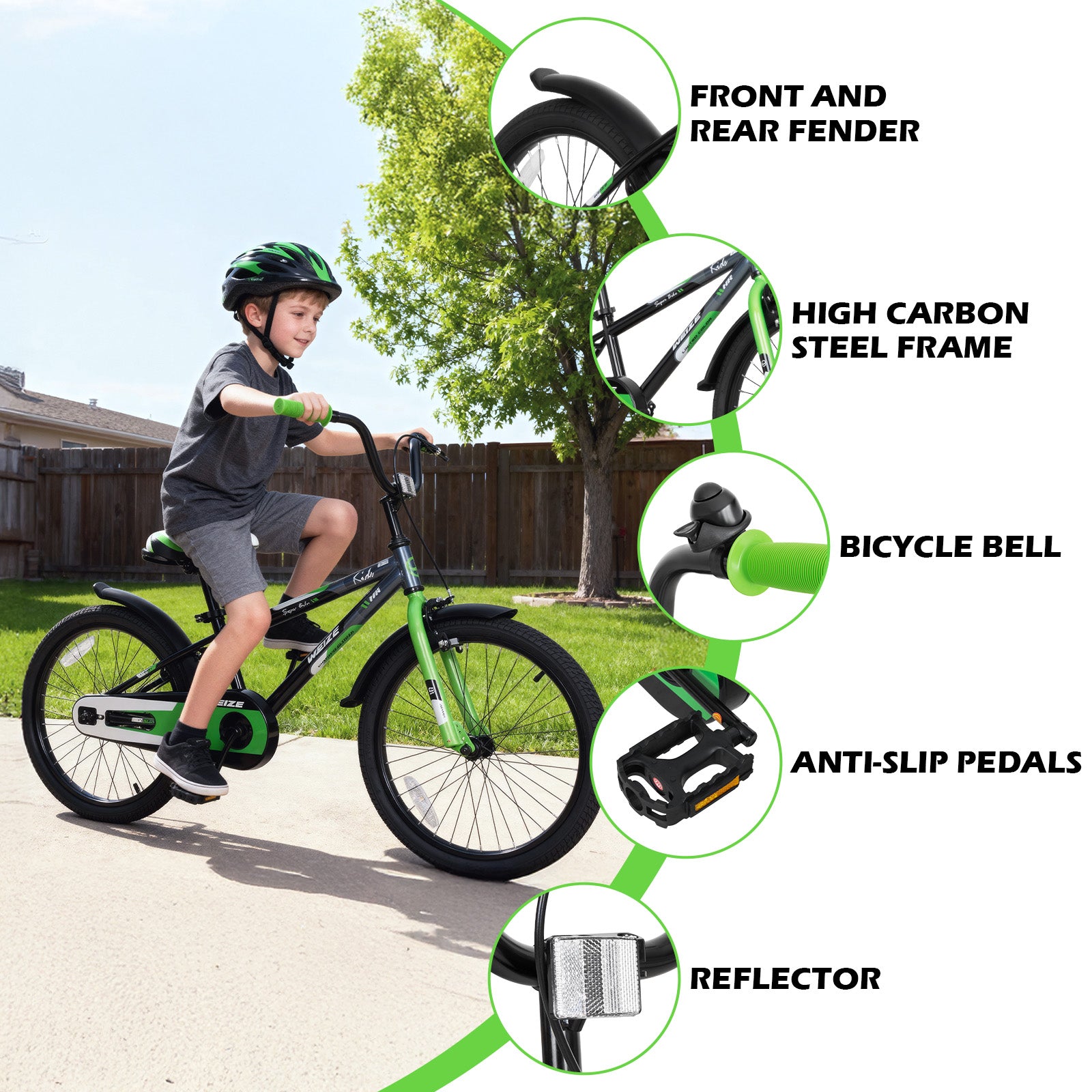 WEIZE Kids Bike, 20 Inch Children Bicycle for Boys & Girls Ages 6-12 Years Old, Rider Height 48-62 Inch, Adjustable Seat & Handlebars, Coaster Brake,Green