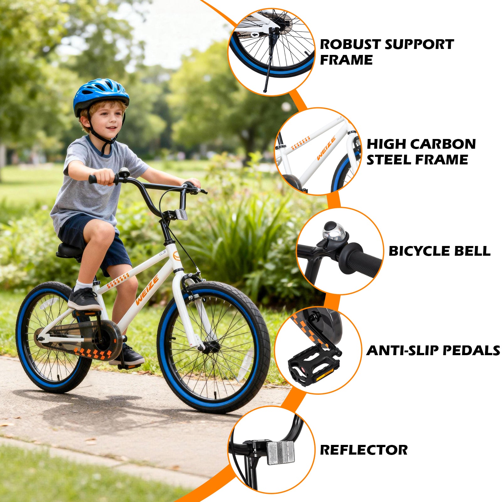 WEIZE Kids Bike, 20 Inch Children Bicycle for Boys & Girls Ages 6-12 Years Old, Rider Height 48-62 Inch, Adjustable Seat & Handlebars, Coaster Brake,Ivory White