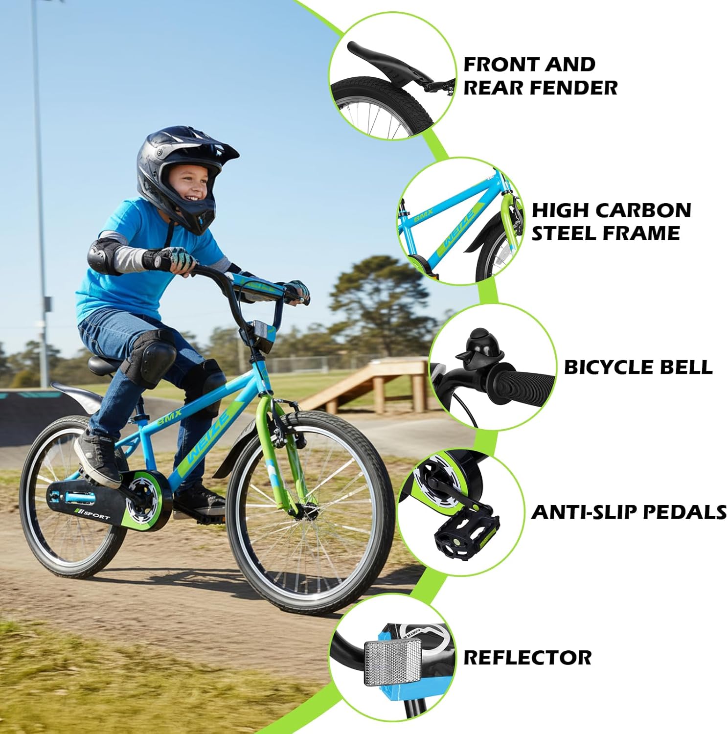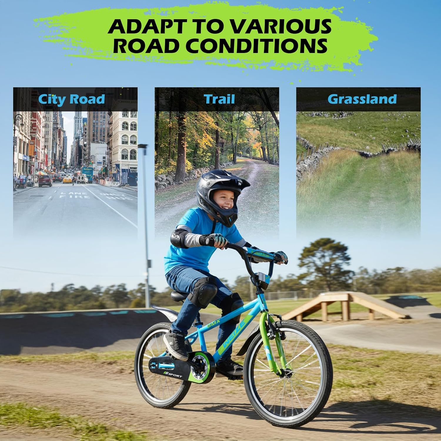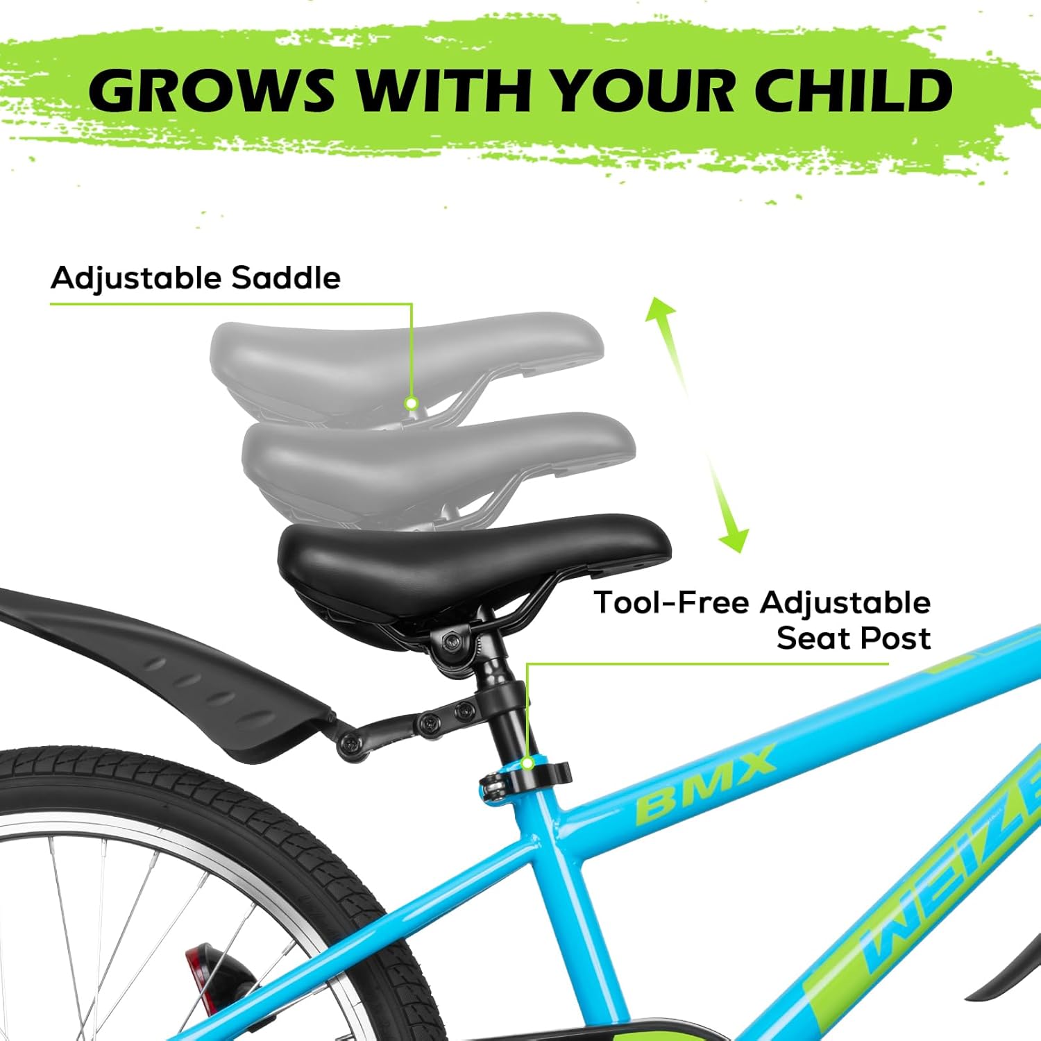 WEIZE Kids Bikes,20 Inch Boy's Bike for Kids,BMX Style Bicycle for Boys Girls Ages 4-12 Years Old,Kids Bicycle with Adjustable Seat,Training Wheels,Front and Rear Fender,Multiple Color Options,Blue