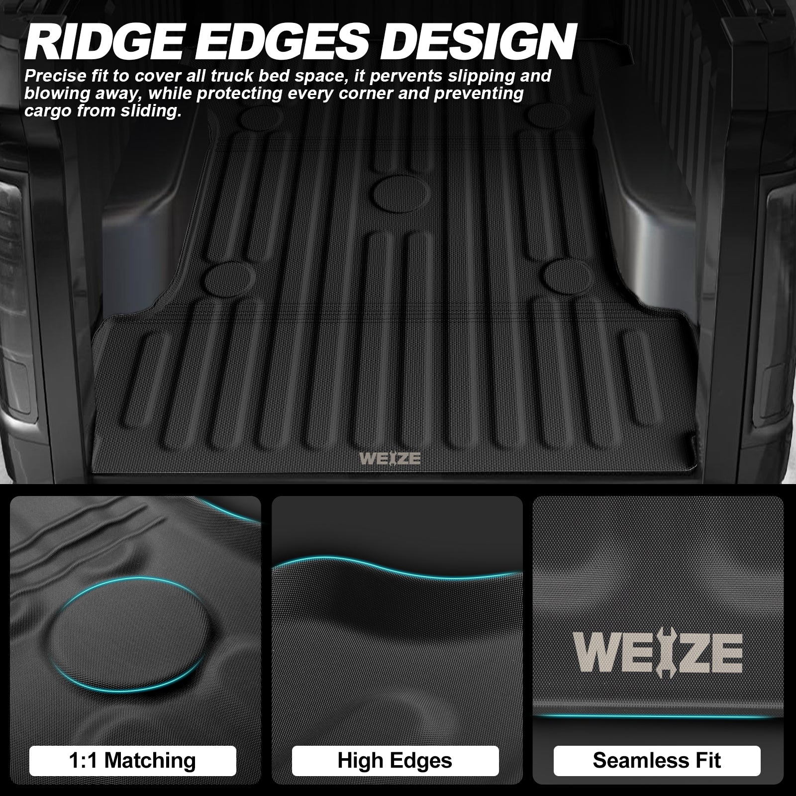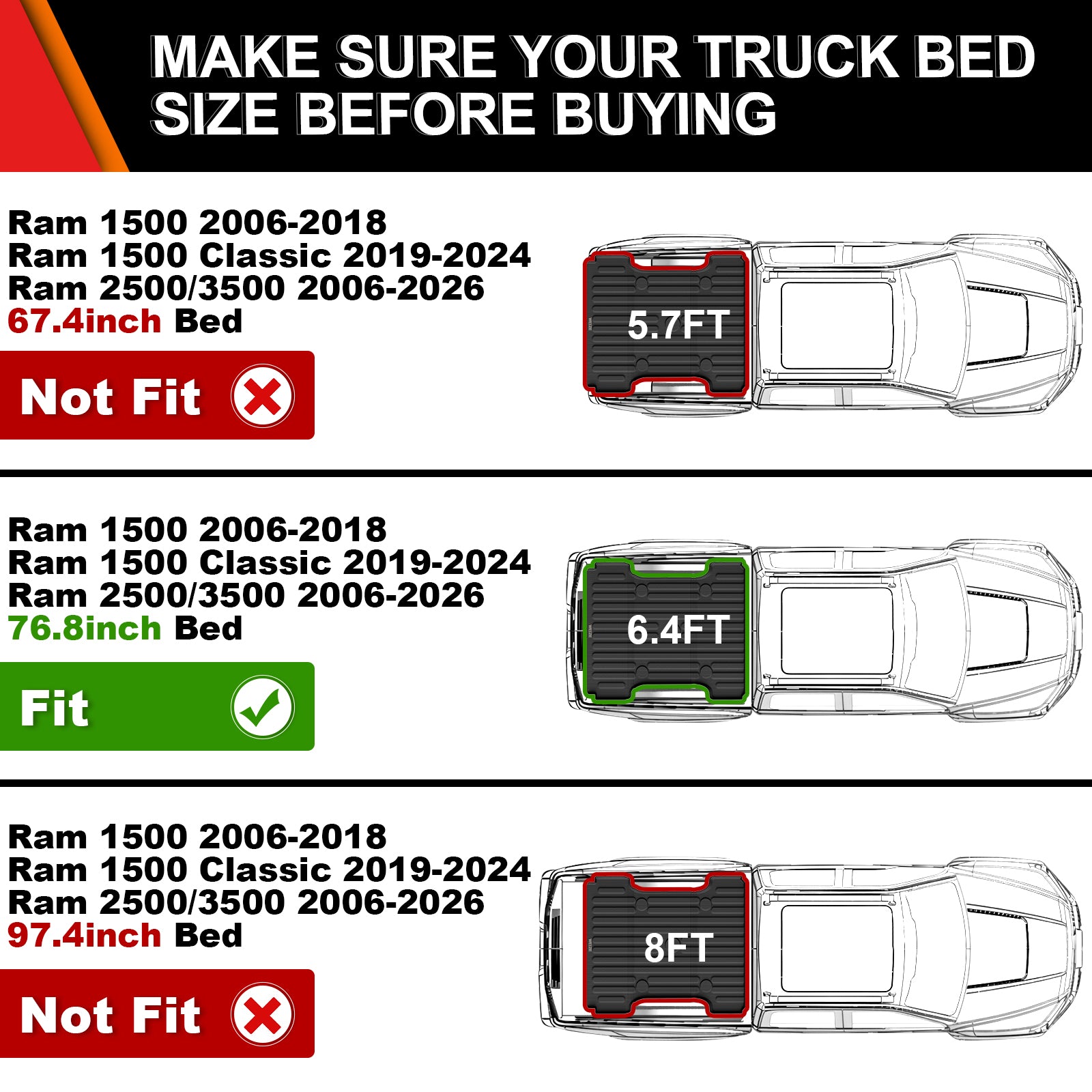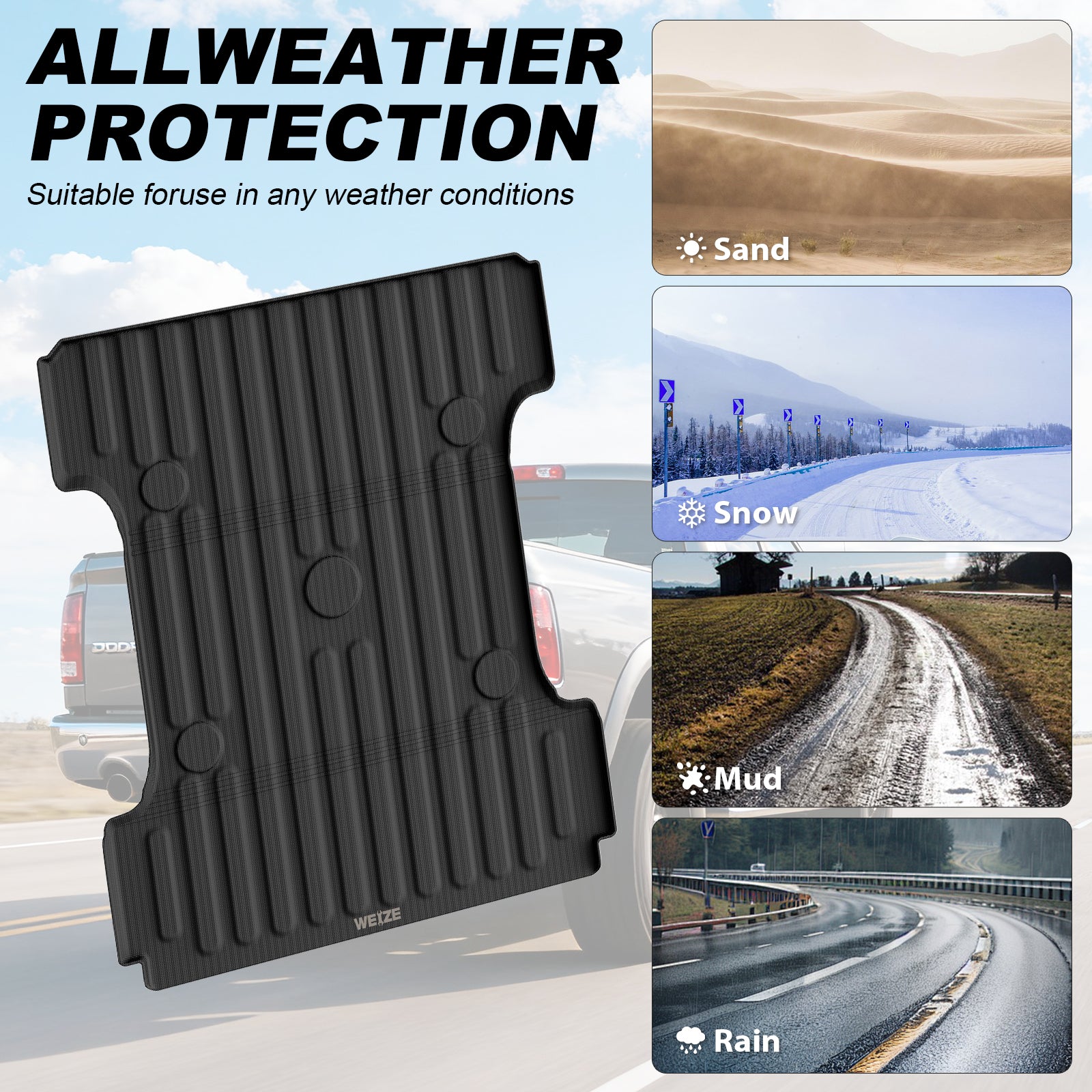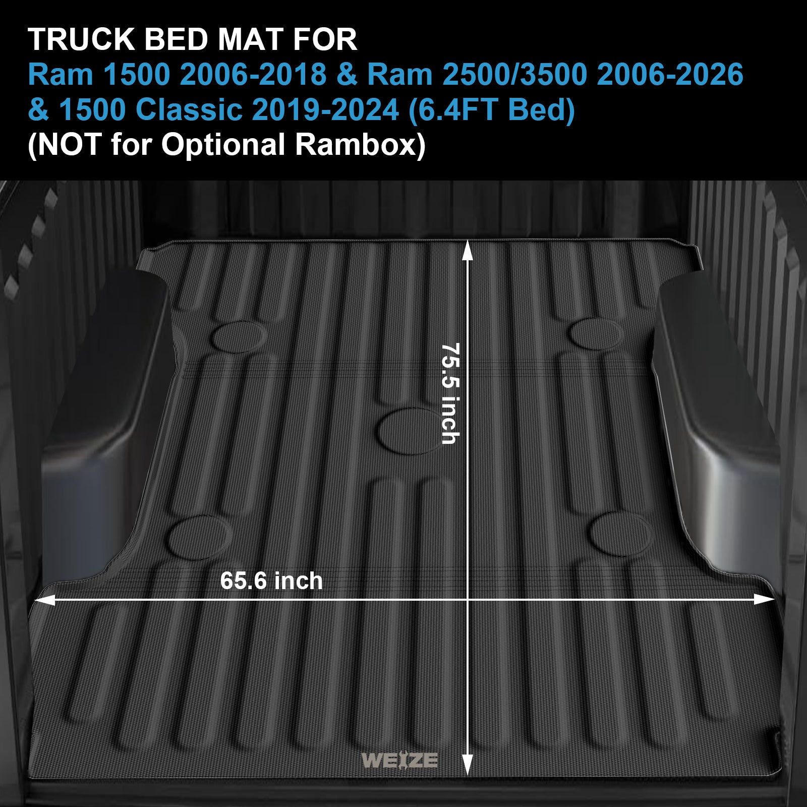 WEIZE Truck Bed Mat for 2002-2025 2026 Dodge Ram 1500/2500/3500 (6.4 FT/76.8 Inches), Compatible with RAM Classic 2019-2024, All Weather Protection TPE Truck Bed Liner Durable Easy Clean Black