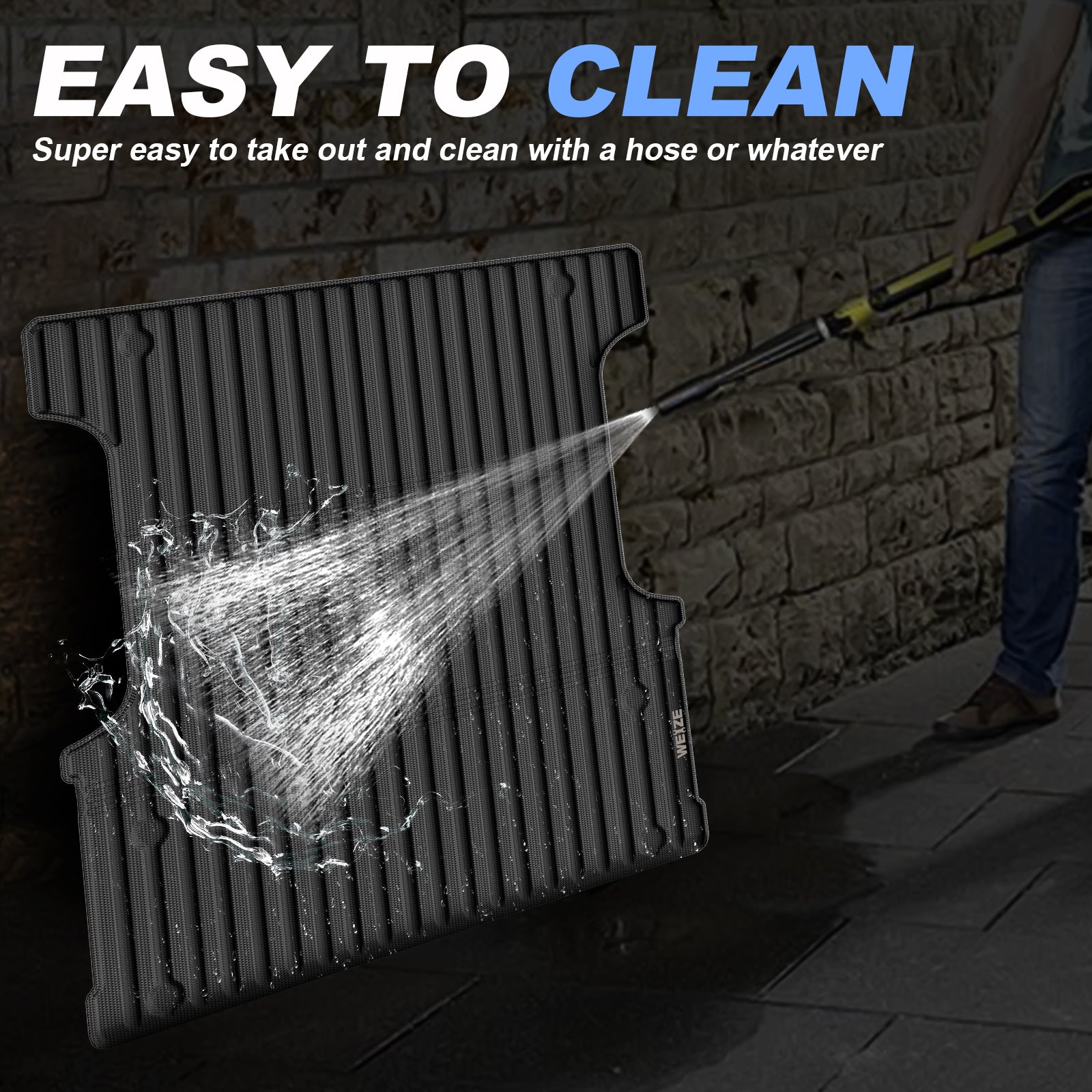Reinforced raised edges contain spills, dirt, and debris inside the mat—so messes don’t spread through your truck bed. Cleaning is simple: just rinse with a hose or wipe with a damp cloth. Its flexible design makes installation and removal quick and easy.