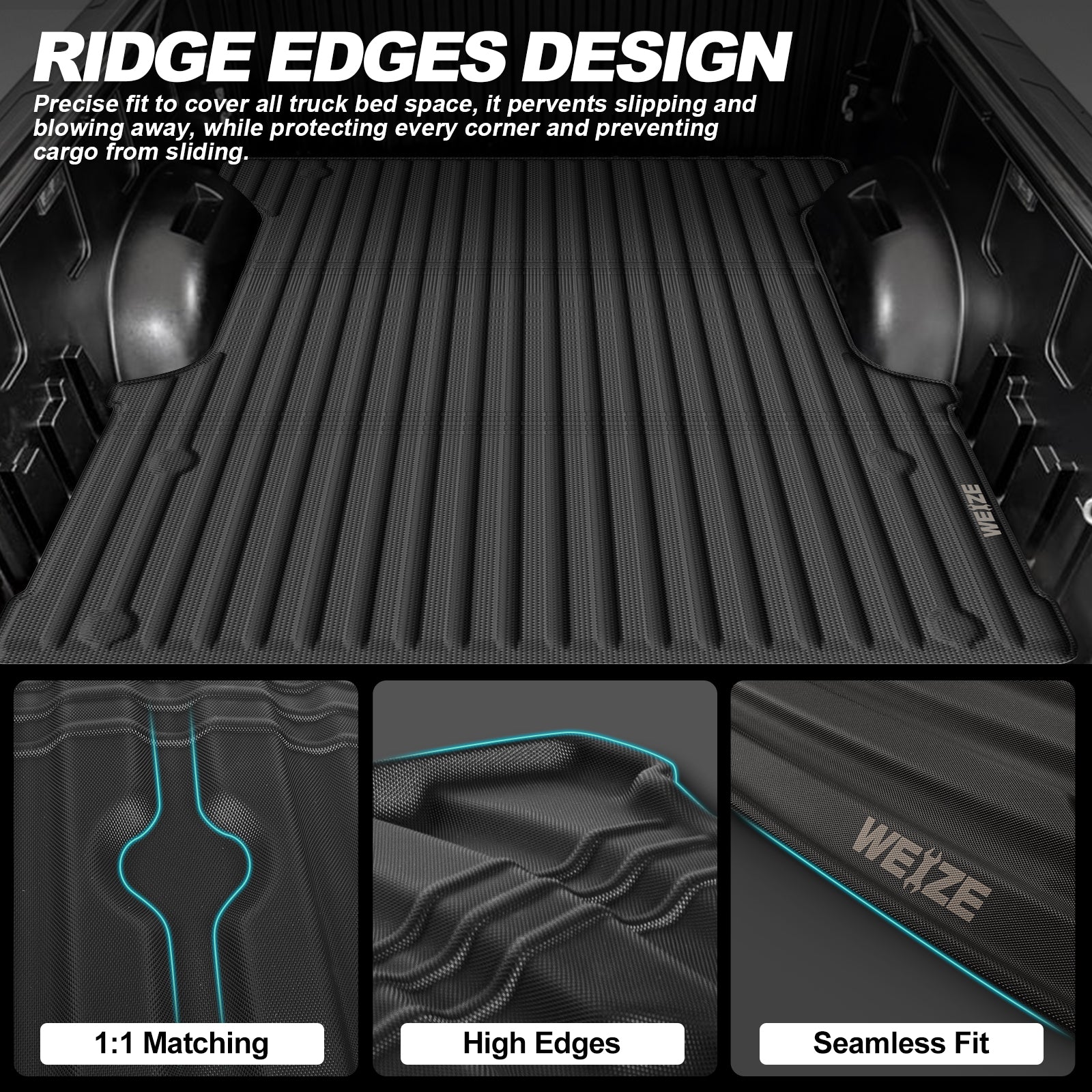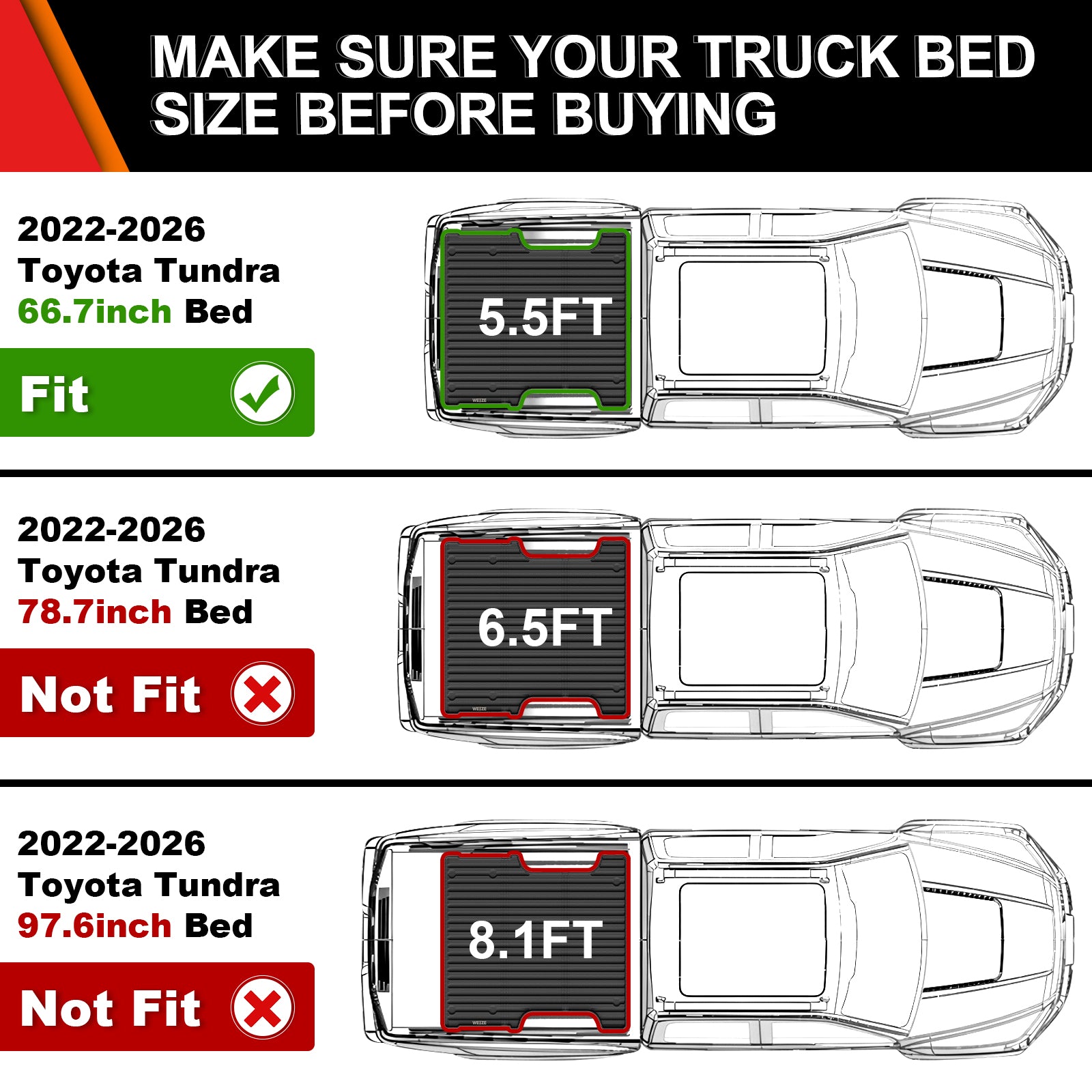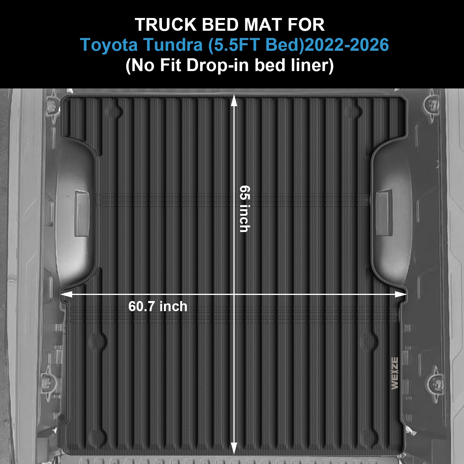 WEIZE Truck Bed Mat for Toyota Tundra 2022 2023 2024 2025 2026 CrewMax 5.5FT, All Weather Protection TPE Truck Bed Liner Durable Easy Clean Black